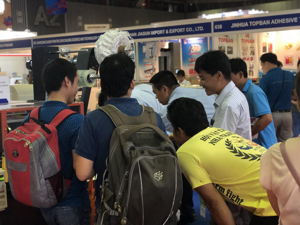 越南胡志明市國際會展中心包裝印刷,此次展示的是新崎商標印刷機