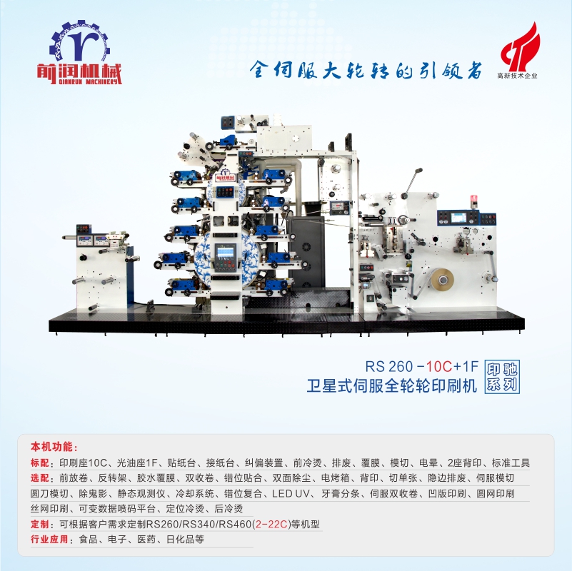 | 1.Compared with common label printing machines, RS260-10C+1F can reach a high speed of 100M/min andl with more precise positioning and more accurate color printing. Advanced ink distribution ensures more even coloring. |